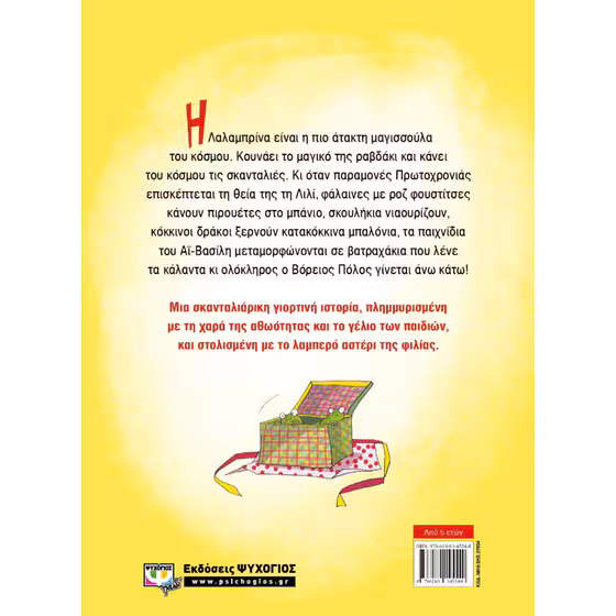 Η Λαλαμπρίνα είναι η πιο άτακτη μαγισσούλα του κόσμου. Κουνάει το μαγικό της ραβδάκι και κάνει του κόσμου τις σκανταλιές. Κι όταν παραμονές Πρωτοχρονιάς επισκέπτεται τη θεία της τη Λιλί, φάλαινες με ροζ φουστίστες κάνουν πιρουέτες στο μπάνιο, σκουλήκια νιαουρίζουν, κόκκινοι δράκοι ξερνούν κατακόκκινα μπαλόνια, τα παιχνίδια του Αϊ-Βασίλη μεταμορφώνονται σε βατραχάκια που λένε τα κάλαντα κι ολόκληρος ο Βόρειος Πόλος γίνεται άνω κάτω! Μια σκανταλιάρικη γιορτινή ιστορία, πλημμυρισμένη με τη χαρά της αθωότητας και το γέλιο των παιδιών, και στολισμένη με το λαμπερό αστέρι της φιλίας. Προτεινόμενη ηλικία 5+ ετών. Διαθέτει μαλακό  εξώφυλλο, διαστάσεις 21 x 29 εκ., 56 σελίδες και πολύχρωμη εικονογράφηση! BARCODE: 9 789604 963225