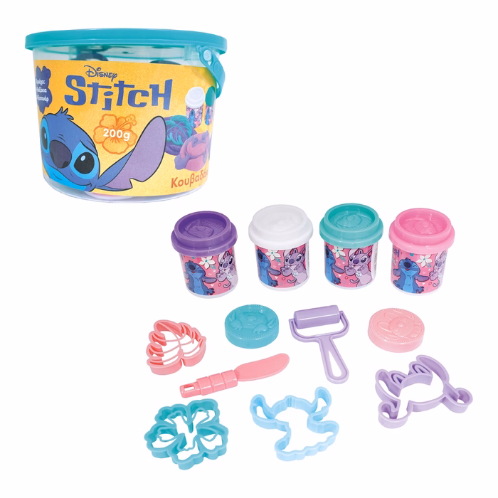 Disney Stitch Κουβαδάκι, με 4 Βαζάκια πλαστελίνη – καπάκια καλούπια & 8 Εργαλεία, 200gr. (AS)
